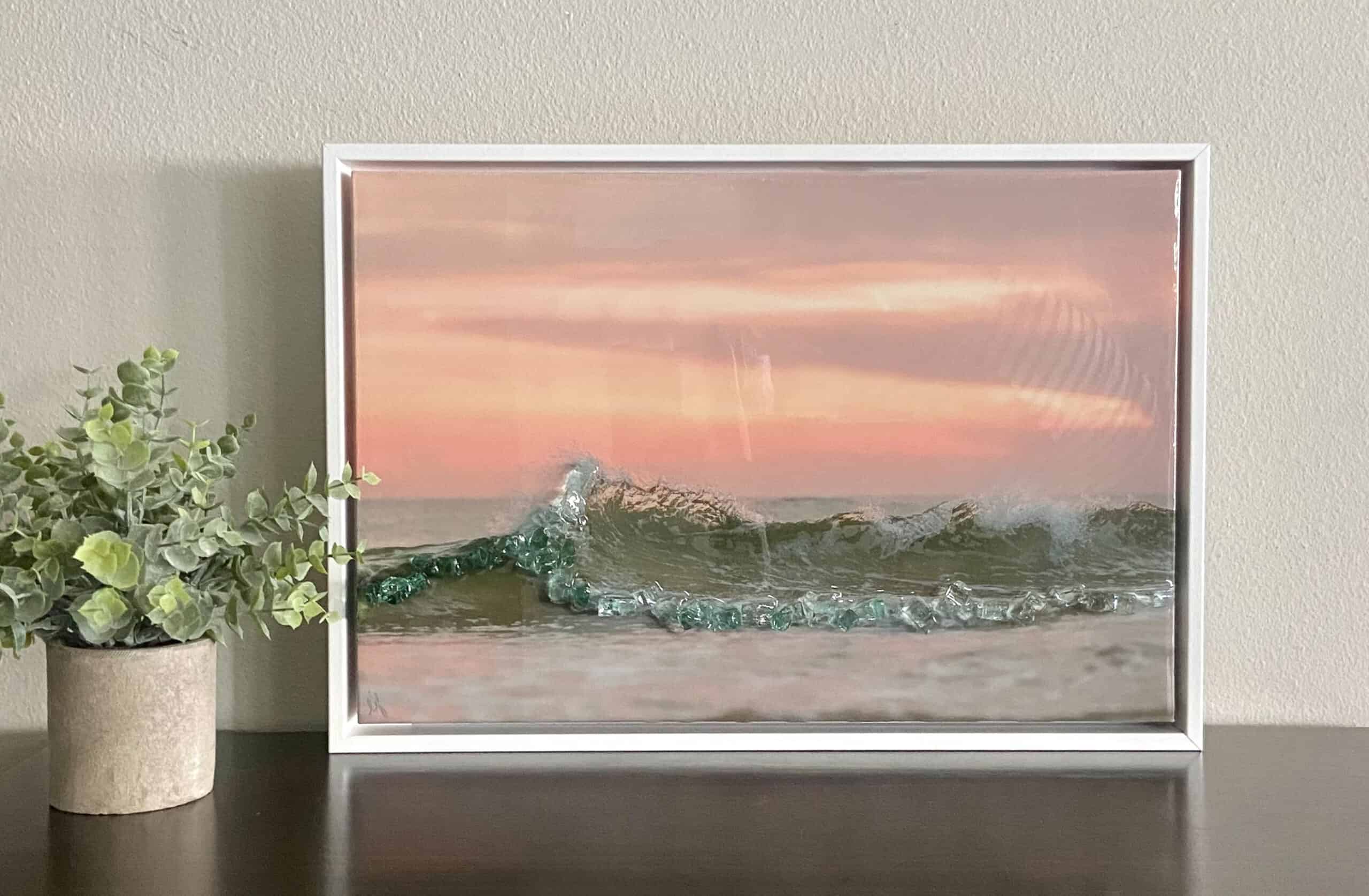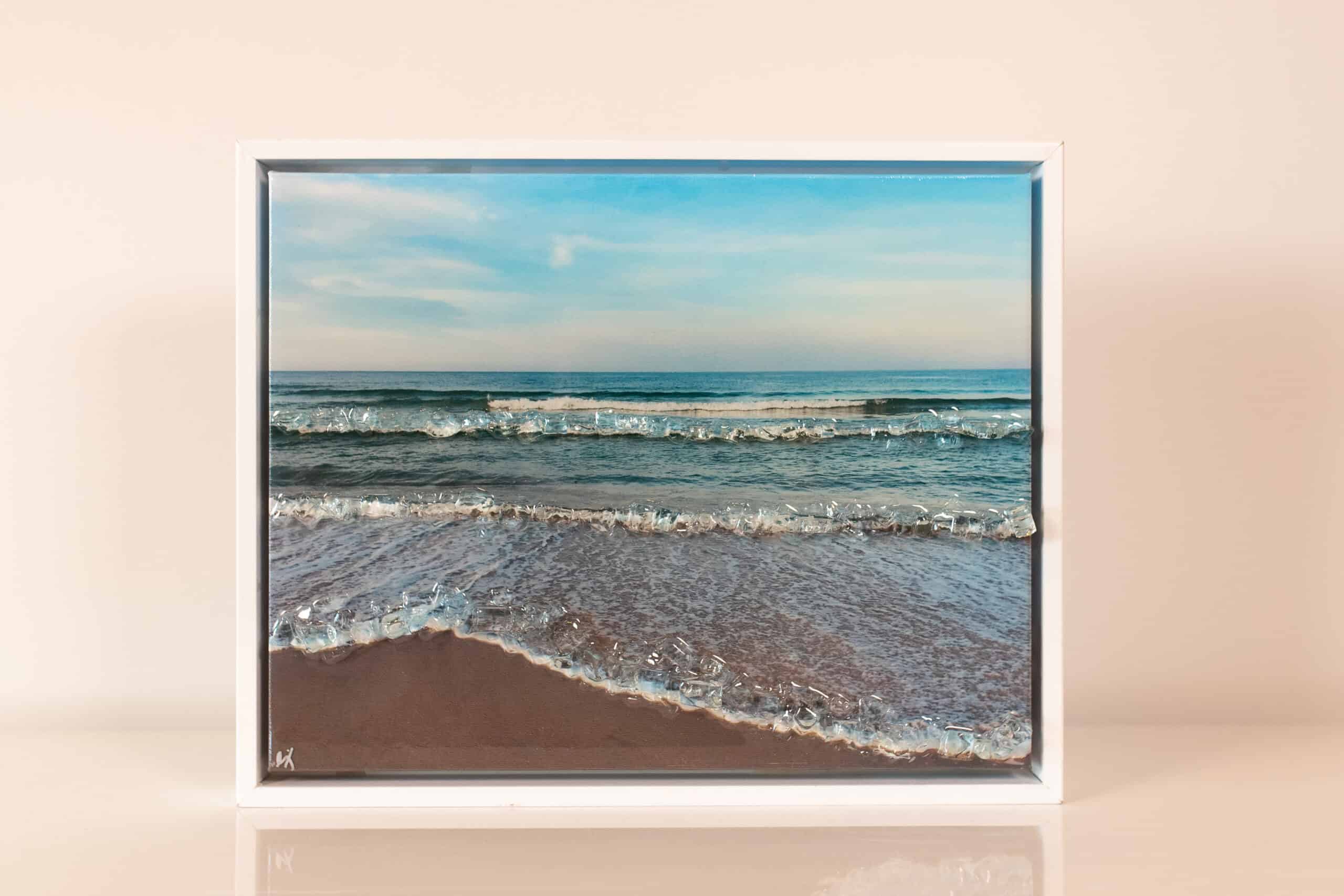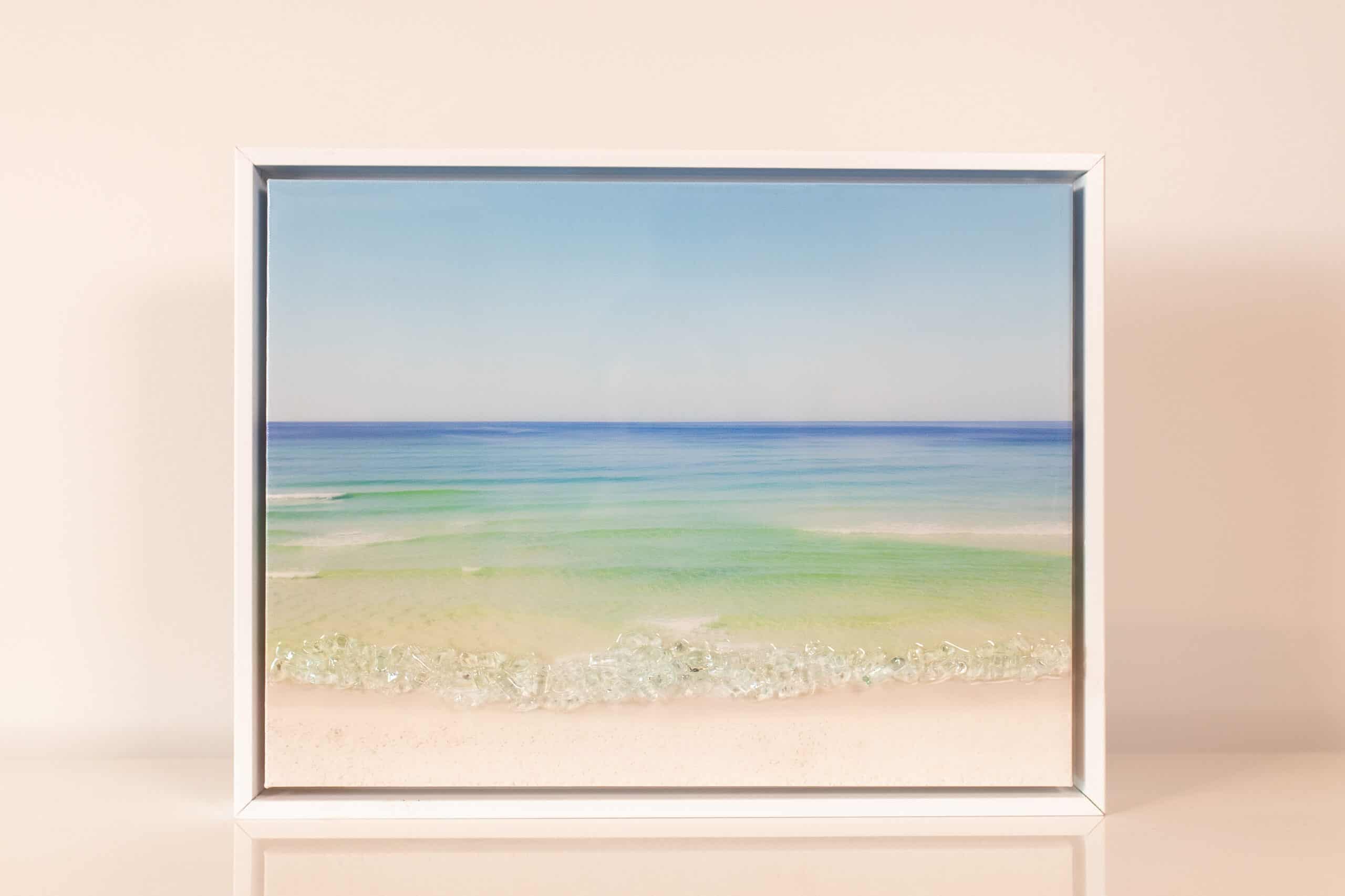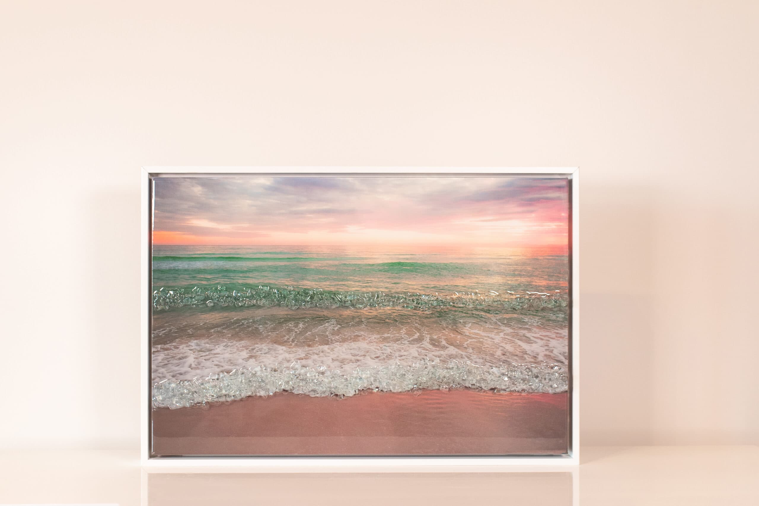 Each of these unique, one of a kind pieces starts with one of my original images curated over several years on beautiful beaches all over the world. It is then printed on archival quality canvas, framed and hand-embellished in accordance with my vision for the image, taking it to another level.