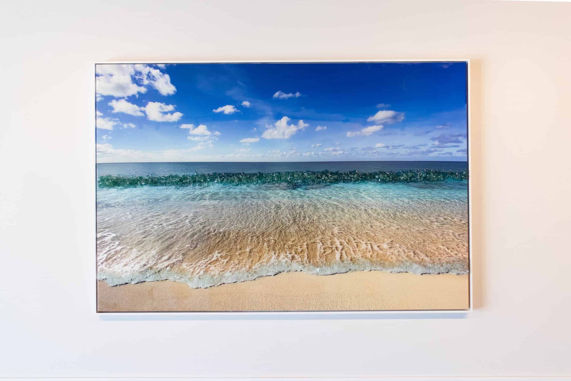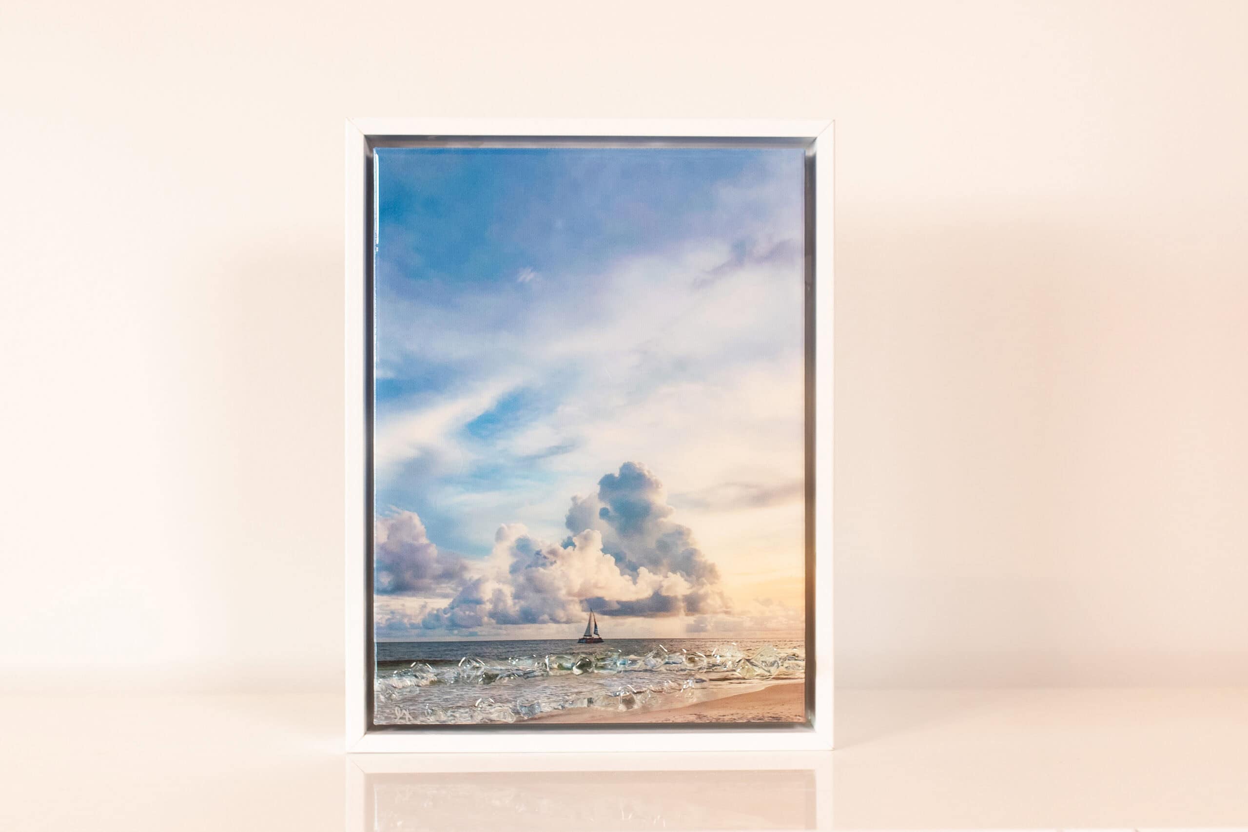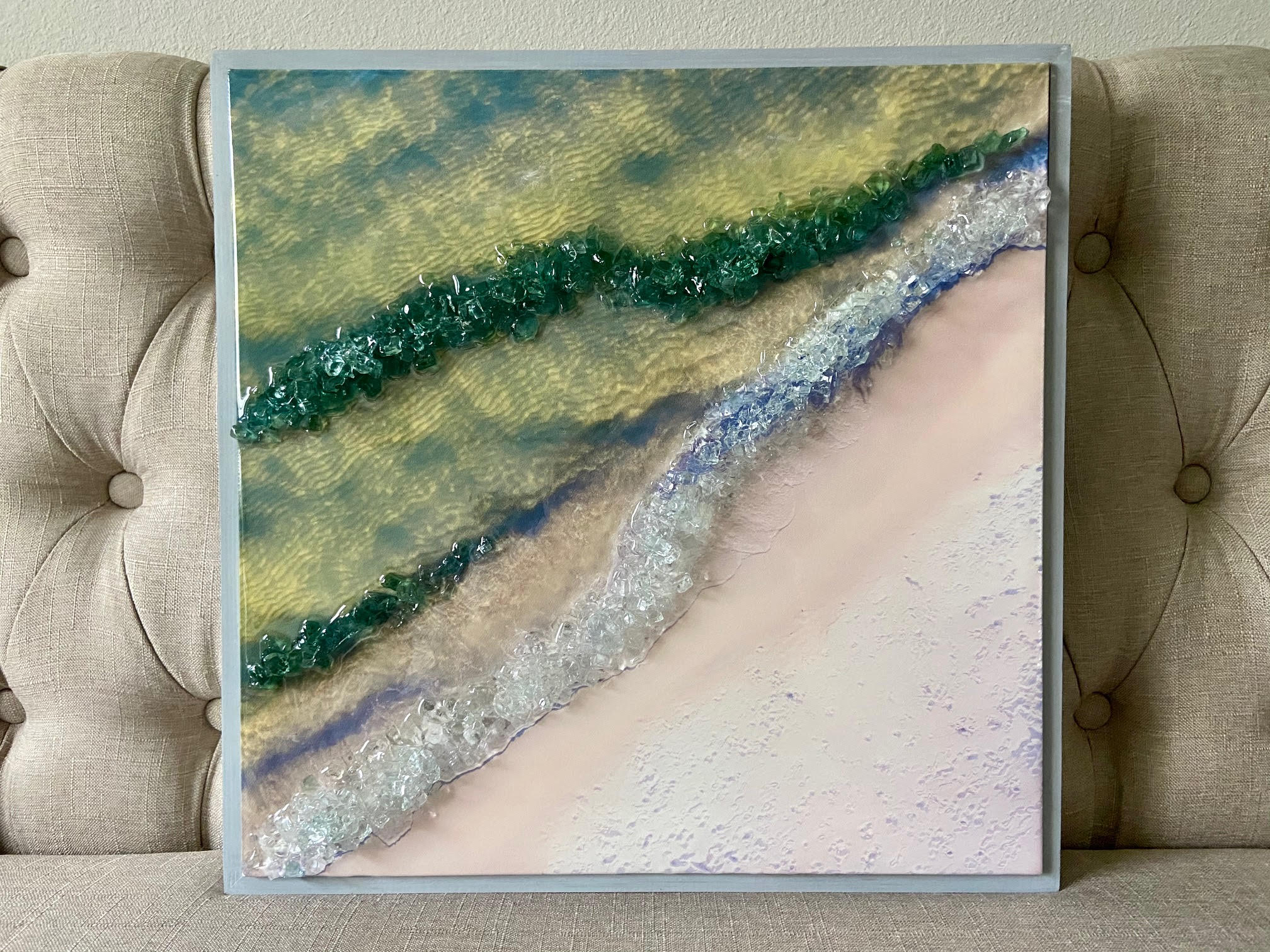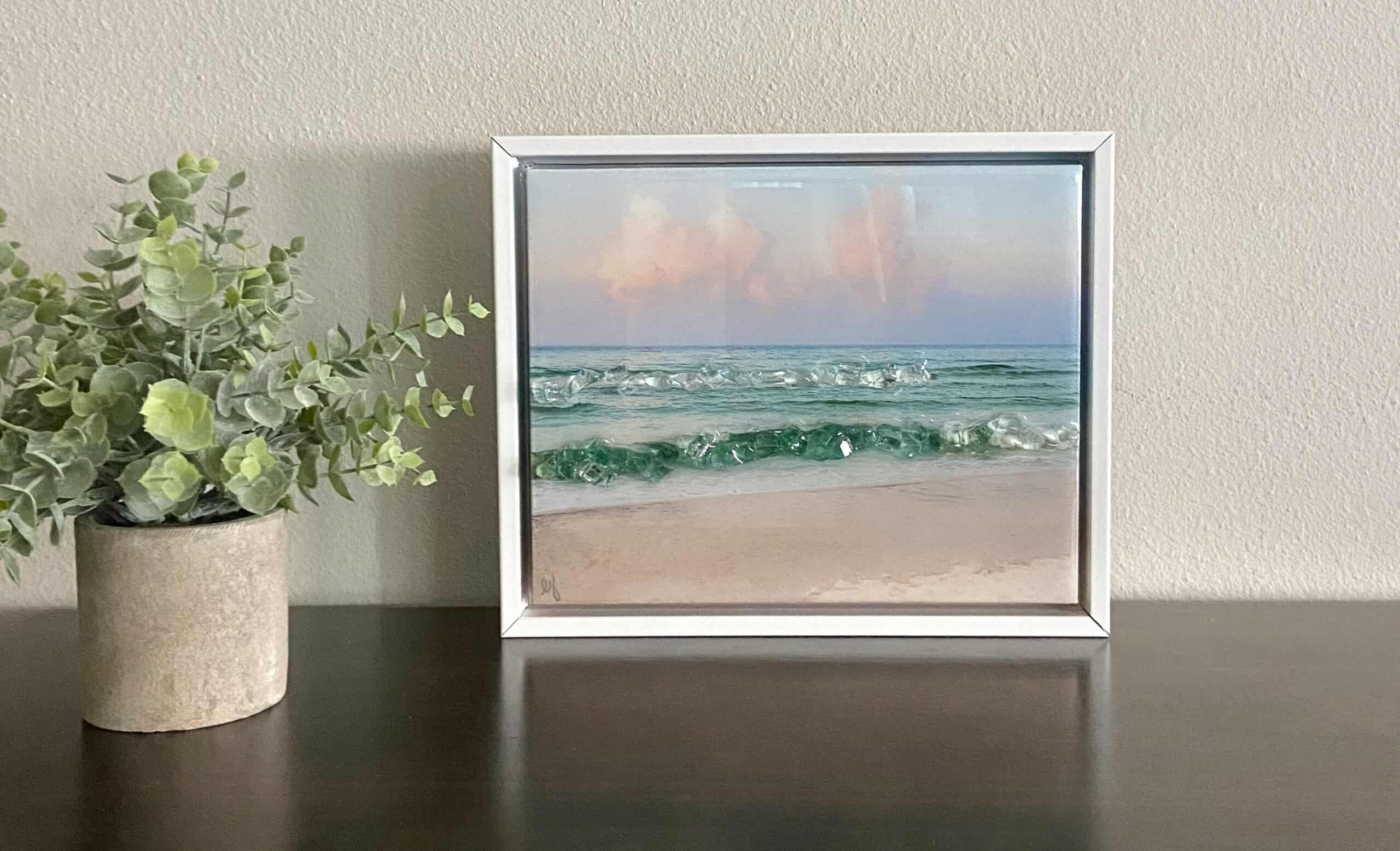 Each of these unique, one of a kind pieces starts with one of my original images curated over several years on beautiful beaches all over the world. It is then printed on archival quality canvas, framed and hand-embellished in accordance with my vision for the image, taking it to another level.